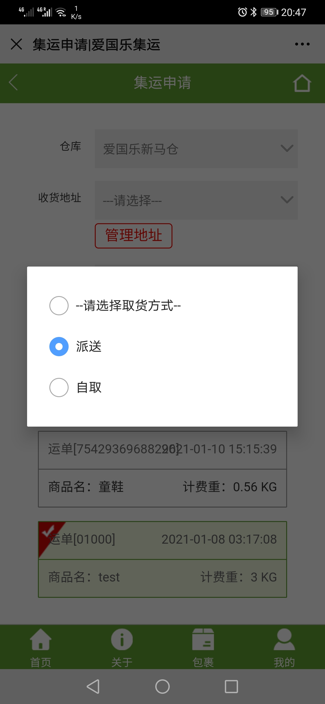 如果是自己家里寄出的包裹,有了快递单号直接跳到包裹预报环节就好了。