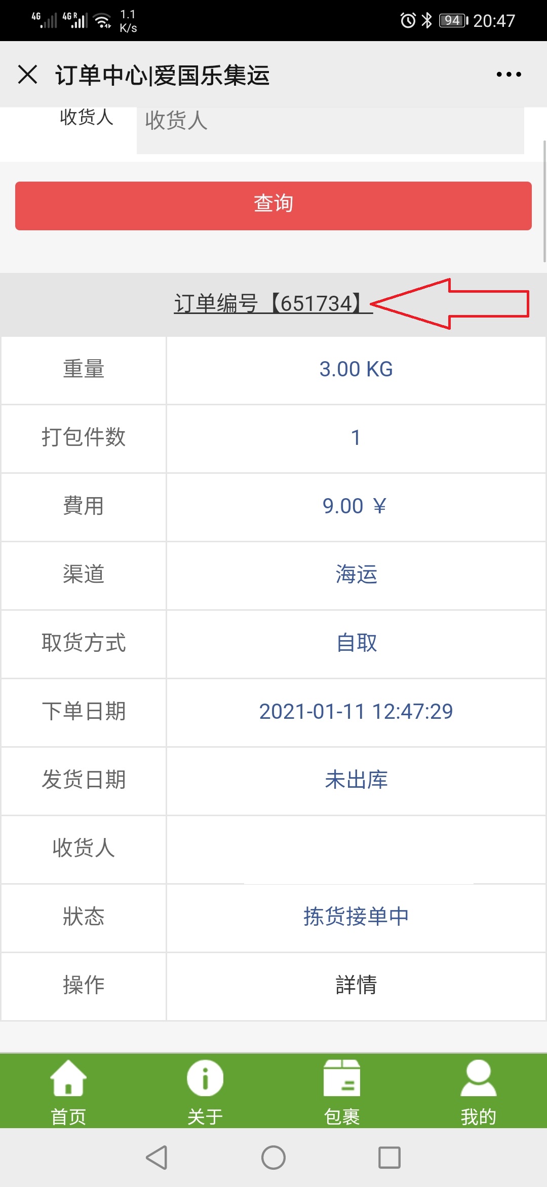 第三步:在淘宝(举例)发货后查询单号,并在系统里进行包裹预报(我的集运--预报包裹),如果不做预报的话,可能导致包裹入库没办法入库到您名下从而造成丢件或延误!